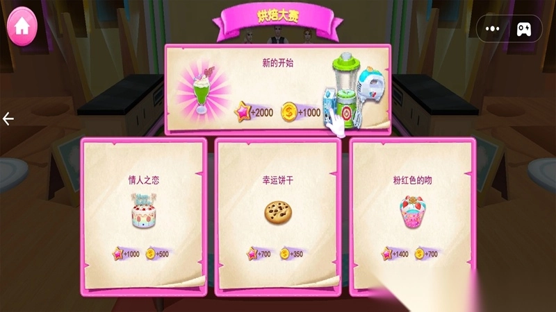 1. 从烘焙大赛中挑选任务,这就如同开启一段全新的旅程。只要成功完成任务,就能获得星星与金币作为奖励,还能解锁新的工具和食材。