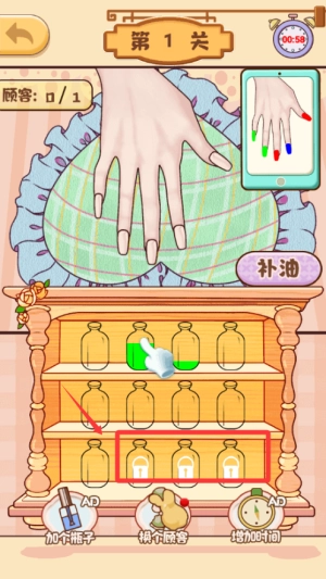 2、随着等级提升解锁更多装饰材料,自由搭配设计独特美甲方案,满足不同顾客的个性化需求提高满意度。