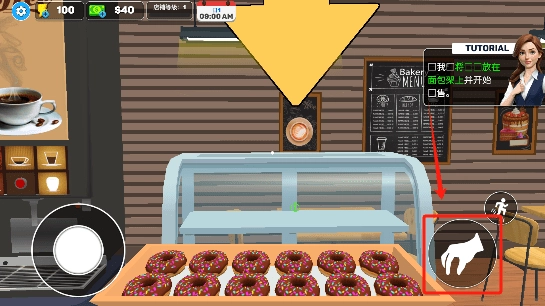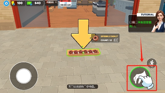4.看到门口的甜甜圈,走过去把它拾取起来。