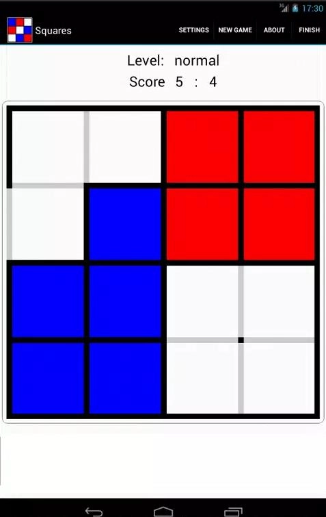 1、玩家轮流连接相邻的两个点。 2、当一名玩家画出一个完整的正方形时,将获得一分并继续行动。 3、棋盘填满后游戏结束,得分高者获胜。