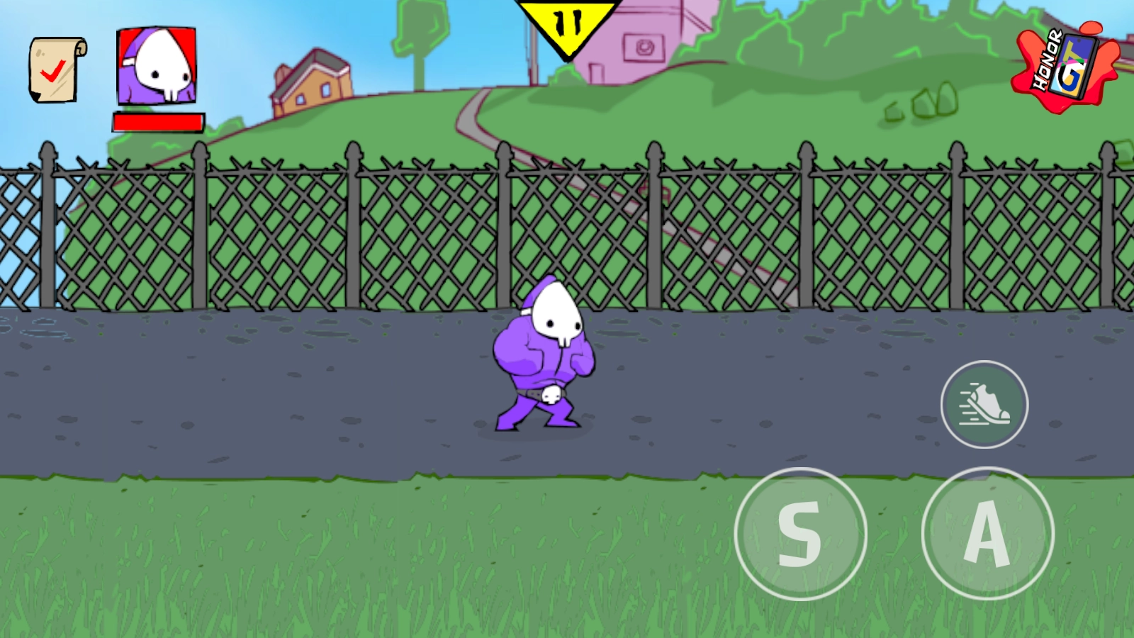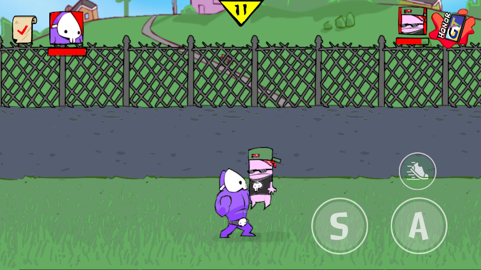 3、点击屏幕右侧如S,A等按钮,操控角色发动攻击,击败对手,获取胜利并推进游戏进程。