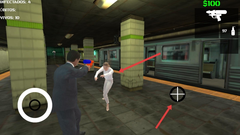 2、踏入场景后,通过左侧虚拟摇杆操控角色移动,利用右侧进行瞄准射击。同时需留意感染数、死亡数以及存活数,合理运用武器,歼灭敌人,保障自身安全。