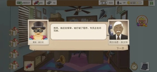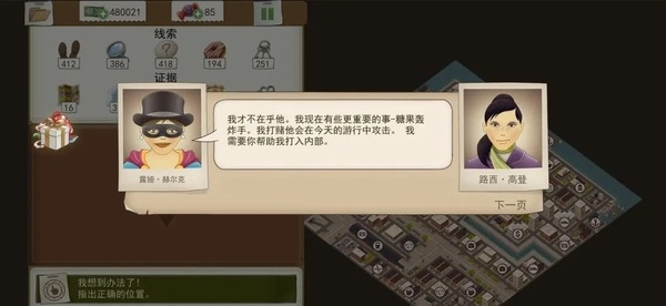 《又一个案子解决了》是一款独具匠心地把三消玩法与推理互动相融合的冒险解谜游戏。玩家在游戏里将化身为一名私家侦探,于颁布禁糖令的虚构城市中,对各类案件展开调查。玩家需凭借自身技能与道具,寻觅线索、指认嫌疑人,最终成功解决案件。该游戏的核心玩法为,玩家通过连线消除的方式收集线索,接着运用逻辑思维对嫌疑人进行审问并定位地点,从而实现逮捕凶手。此外,游戏还融入了角色养成与角色互动的元素,玩家能够收集糖果,用以升级自己的侦探技能,或者购买服装来装扮角色。