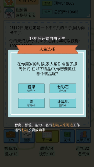 3.采用动态事件生成机制。每个人生阶段都会面临机遇与挑战,构建出永不重复的人生图景。