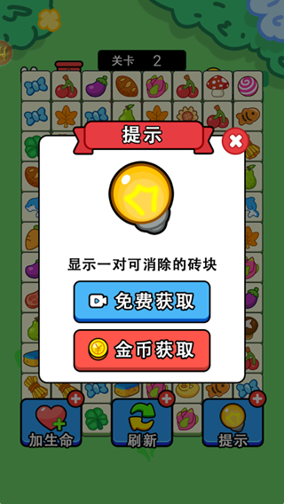 4、提示可以让你直接消除一块砖块,陷入死局的时候用就非常不错。