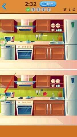 3、请注意仔细观察两张图片,点击选择其中的不同之处,一旦找到,不同的地方就会被圈出。