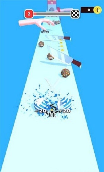 2、赛道上的危险陷阱逐渐增多,需移动蚂蚁堆避开杀虫剂、刀,手掌,或蚊子拍等,同时收集沿途食物,增大蚂蚁群的数量。