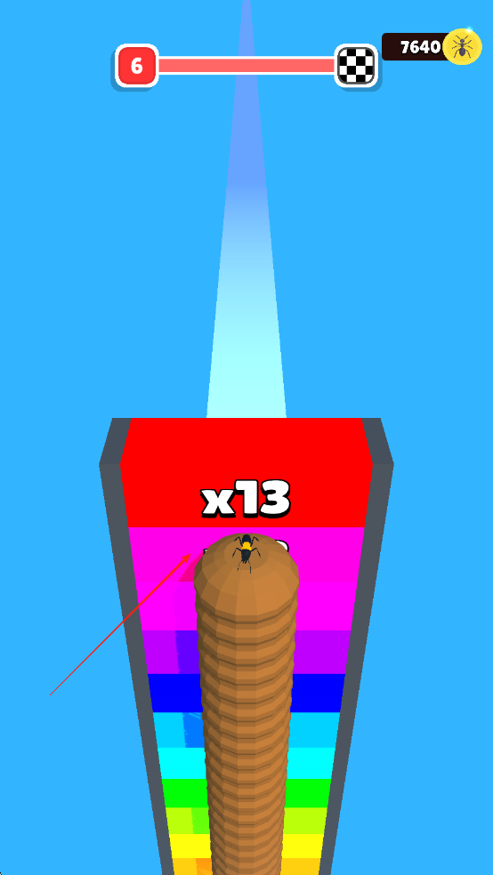 3、成功带领足够数量的蚂蚁抵达终点,进入蚂蚁穴后会堆叠得越来越高,叠的越高,获得的蚂蚁币更多。