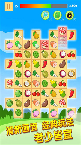 一、经典模式:采用连连看经典玩法,在规定时间内将所有水果消除即算通关。