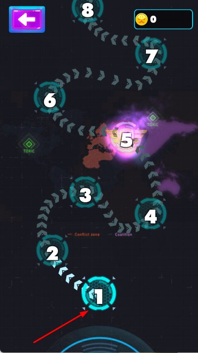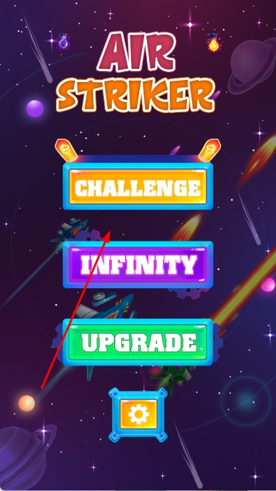 1、模式选择与战机出击:进入界面,选挑战或无尽模式,挑战模式,从关卡1起步,点击关卡的图标,驾驶初始战机进入星际战场,准备迎击敌人。
