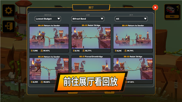 1. 开放世界模式:游历多张特色鲜明的地图,攻克难度不一的桥梁关卡。