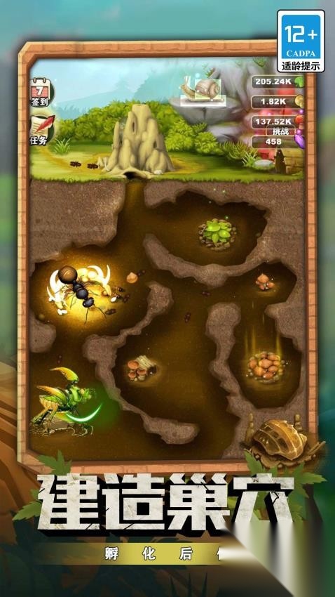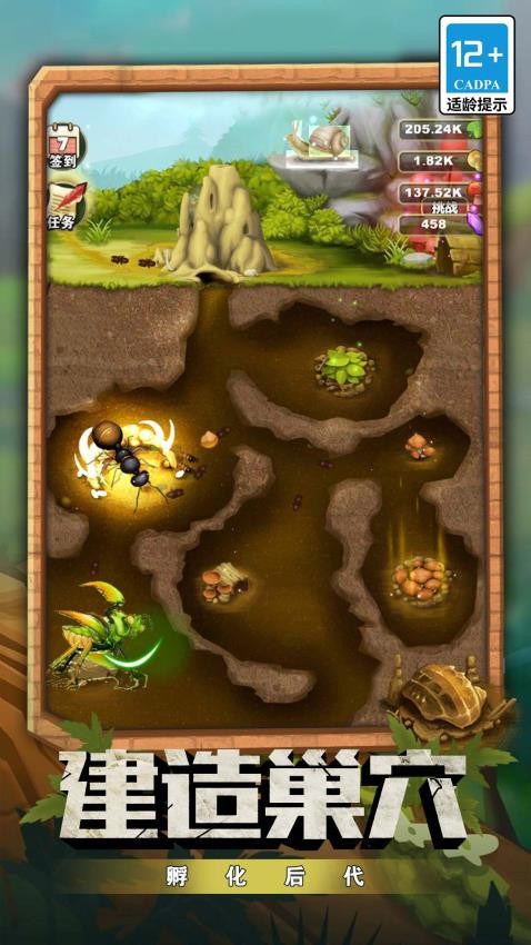 1、可切换兵蚁战斗、工蚁建造、蚁后繁殖三种角色,体验蚁群社会运作;