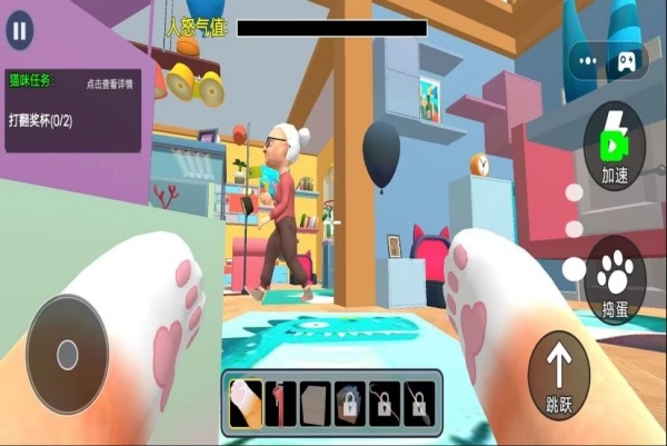《萌猫来冒险》是一款充满趣味的模拟游戏。在游戏里,玩家化身可爱的小猫,能在房间的各个角落自由探索。无论是厨房的橱柜,还是客厅的沙发,亦或是孩子的玩具房,每个地方都暗藏惊喜与挑战,由此开启一段独具特色的冒险旅程。要是不小心犯错,还得躲避奶奶的追捕,那过程真是让人胆战心惊。