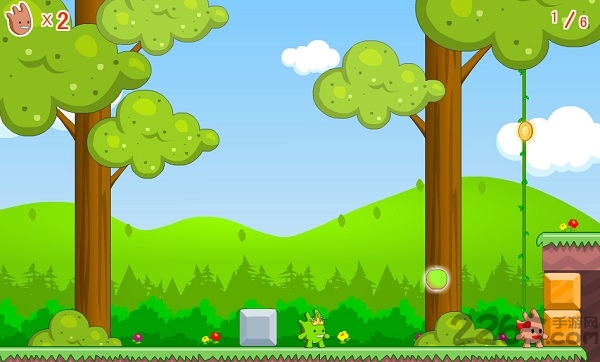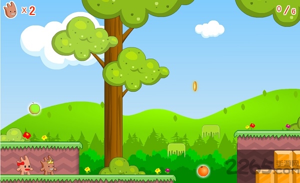 4. 过去之后会有一个红色小兵公主上前消灭它(只要碰一下就死了),接着跳上小屋就能过关。王子先行动,走上面去采集绿色果实。