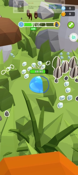 1、玩家进入游戏后,将控制一个微小的生物,通过吞噬周围的石头和其他生物来获取能力。