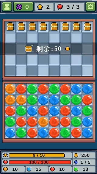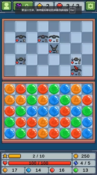 4、玩家在进行消除操作时,务必留意体力的消耗情况。一旦体力消耗殆尽,便会进入敌方回合,此时怪物会向前移动一格。倘若怪物越过特定界限,就会对我方发起攻击。