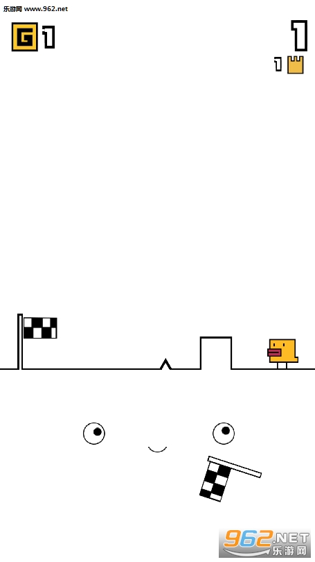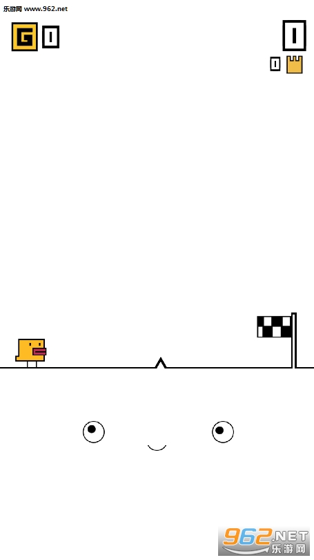 3、当然啦,要是跨不过去或者不小心碰到的话,游戏就会结束啦,这时候小黄鸭会变成一堆星星然后消失不见,这个设定还挺魔性的。