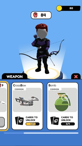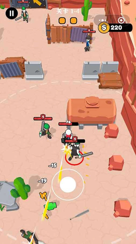 2、游戏中初始武器为弓箭,玩家们需要在不同的战斗中逐步获得金币来购买更强的装备。、弹药、医疗包等生存物资,不断提升自身战斗力,