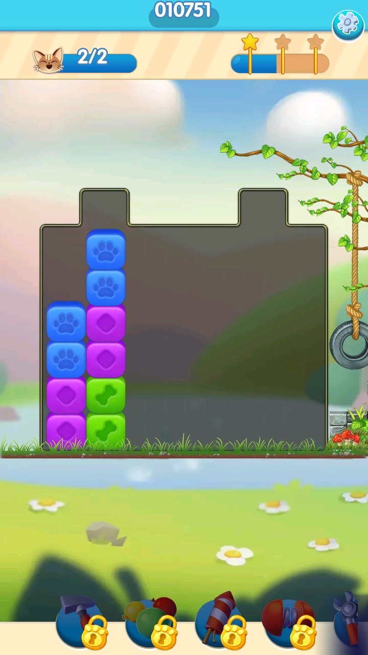 3、救援场景分层布局:部分关卡采用多层空间设计,宠物被困在不同高度的平台上,需先消除下层方块让上层平台掉落,才能接触到高层被困宠物。