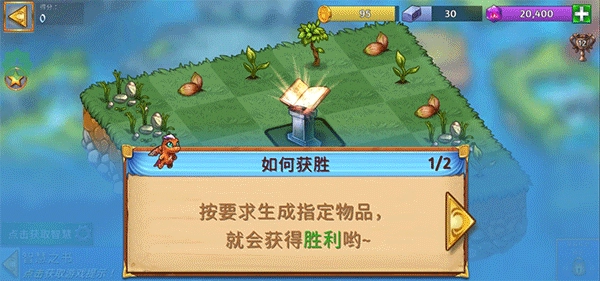 2、进入关卡以后,点击中间的书,可以获得游戏提示