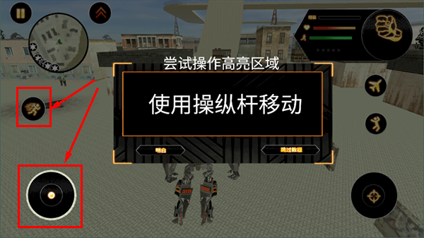 3、右侧的按钮用于瞄准和近战攻击,其上方的按钮点击进行跳跃;