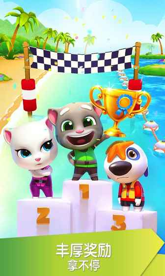 1、可从五名免费骑手中挑选:会说话的汤姆猫、会说话的安吉拉、会说话的汉克狗、会说话的狗狗本以及会说话的金杰猫。这些骑手都已蓄势待发,做好了比赛的准备。