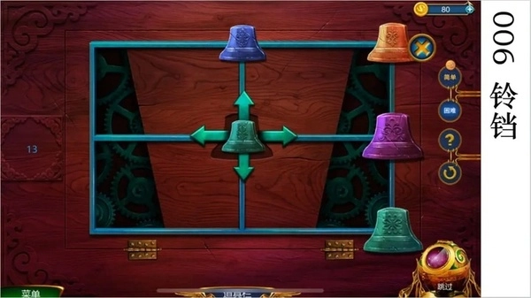 2.吃掉紫色铃铛后往下,再把橙色铃铛移过来。