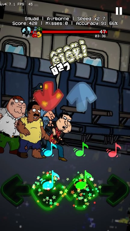 2.差异化内容:解锁角色后解锁专属对战曲目与场景,每个角色的音乐风格与节奏密度各异,丰富游戏多样性。