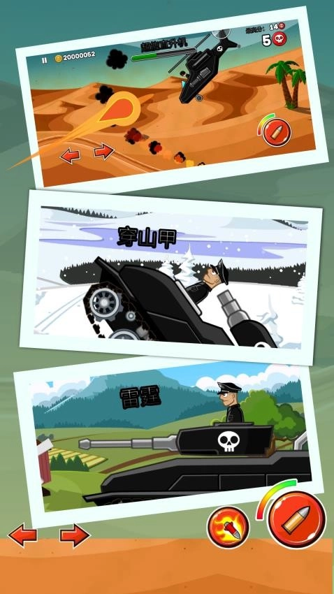 1、多达几十种武器和合金子弹,享受不同武器带来的不同射击感觉,灵活控制坦克战车就能最大程度提高胜率,不容忽视。