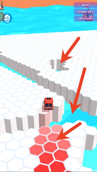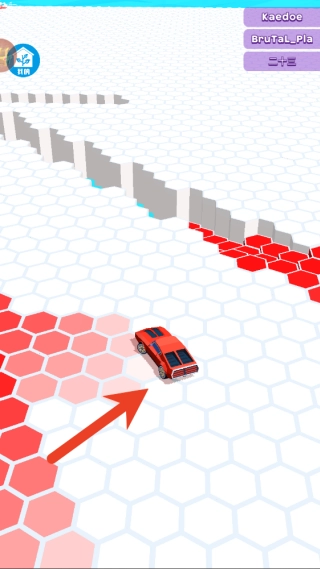 2、在竞速过程中,你后方经过的砖块将逐渐消失,因此需要谨慎选择行驶路线,并巧妙封堵路线、诱导对手驶入无砖区域。