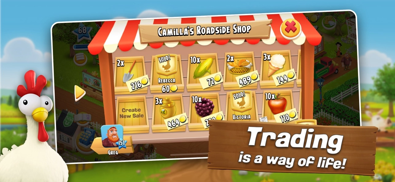 - 与社区成员在游戏内交易作物和产品。
