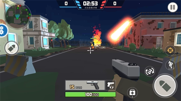 3、进入到游戏之后,左下角虚拟摇杆操控角色移动,右下角包含了射击、换子弹、跳跃等按键;