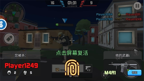 4、一旦被敌人击中,血量就会减少,当血量消耗殆尽时角色便会死亡,此时点击屏幕即可复活。