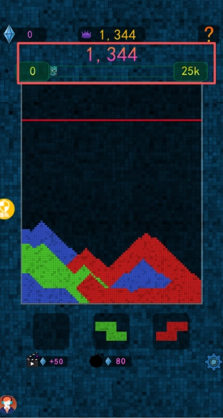 3、每成功的填充行列,就可以自动消除获得分数,不断的进行累积,看看你的极限。