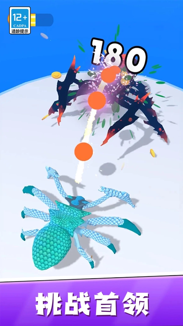 2、吞噬弱小的蜘蛛,躲避危险的大蜘蛛,不断的提高你的战斗力。