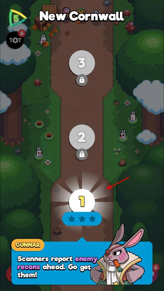 1. 来到NewCornwall关卡界面,点击已解锁且带有三星标识的关卡1,启动飞行挑战任务。