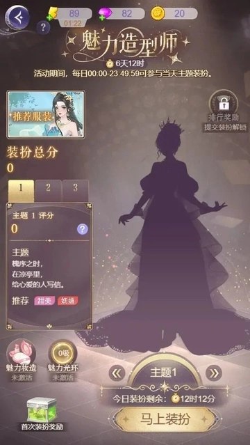 每个主题可使用1份魅力妆造,为该主题提供换装评分加成20%;