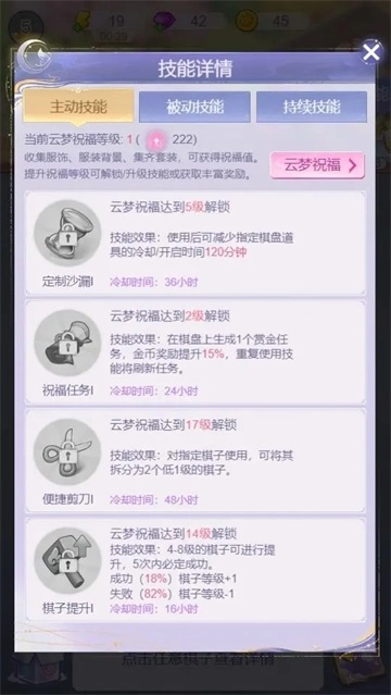※ 祝福等级每次提升可解锁相关道具奖励、或是解锁/升级技能。技能可在棋盘界面中进行查看、使用。