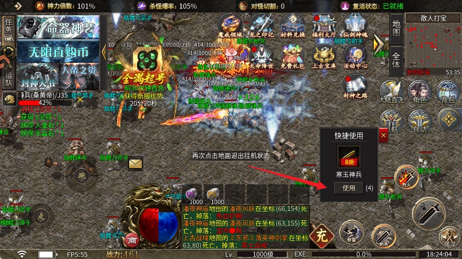 该游戏最为显著的亮点便是满屏爆装,无论是普通小怪,还是强大的BOSS,都有几率掉落极品装备,那光柱特效带来的视觉冲击极为震撼。不仅如此,装备还能自动回收,这让玩家既能尽情享受打怪的畅快,又能从中获取收益,对于散人玩家而言,简直就是打金的绝佳之地。