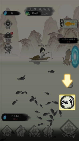 3、点击抛竿即可,当然,要鱼在鱼竿下方才可以。