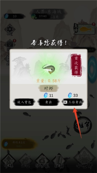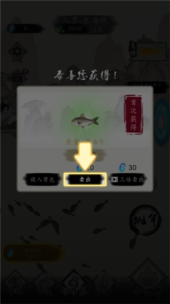 4、然后点击卖出就可以了,因为你修炼需要消耗灵石,前期的鱼都卖掉。