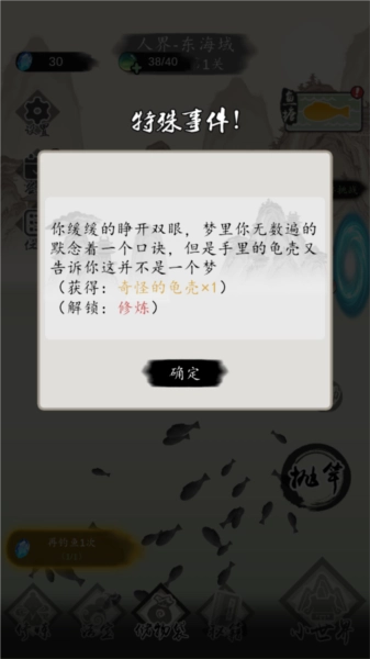 4、钓鱼系统:玩家可以在游戏中享受到真实的钓鱼体验,感受到不同种类的鱼儿的特性以及它们对于修仙的贡献。