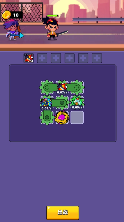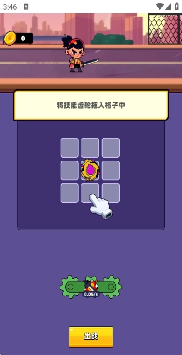1、打开游戏后无需登录即可进入第一关的挑战中,将下方的技能齿轮拖进方框中。