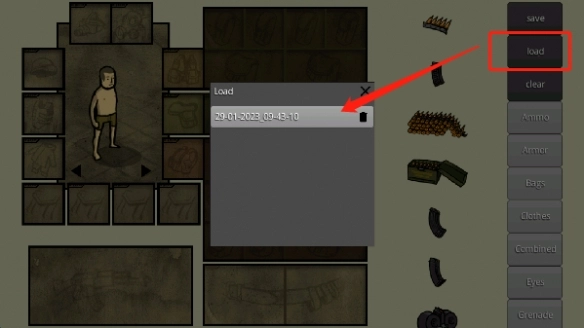 5、要重新生成之前的搭配,只需打开如下图所示的“load”选项,选择刚才的存档即可。