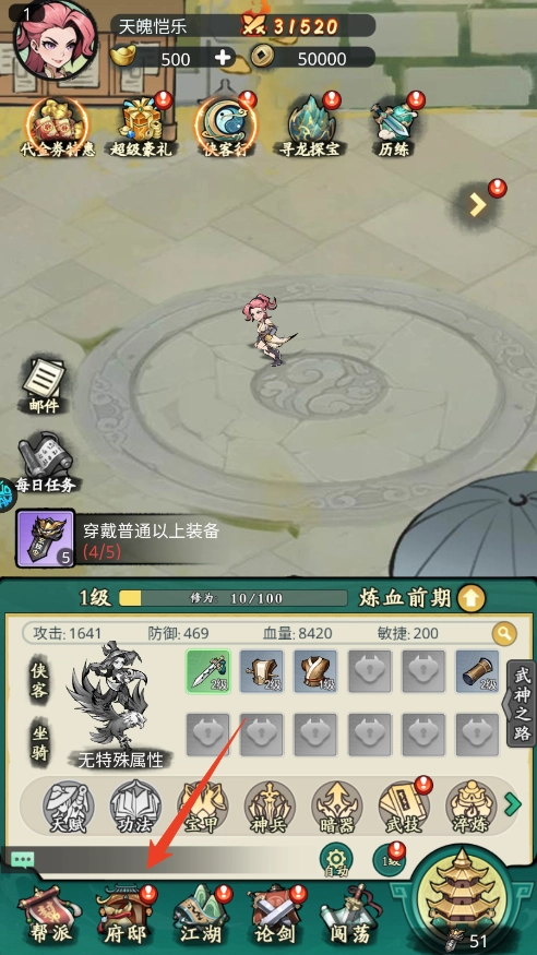 5、游戏的玩法还是很丰富的,我们点击左下方的府邸看一下。