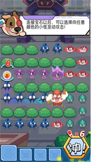 6、当成功连接并消灭10个小怪后,会生成一颗宝石。连接宝石后,玩家能够选择对任意颜色的小怪发动点击操作。