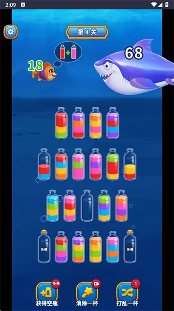 策略性道具使用: 玩家可以根据关卡难度和瓶子布局,灵活使用道具来化解困境,增加游戏的策略性。