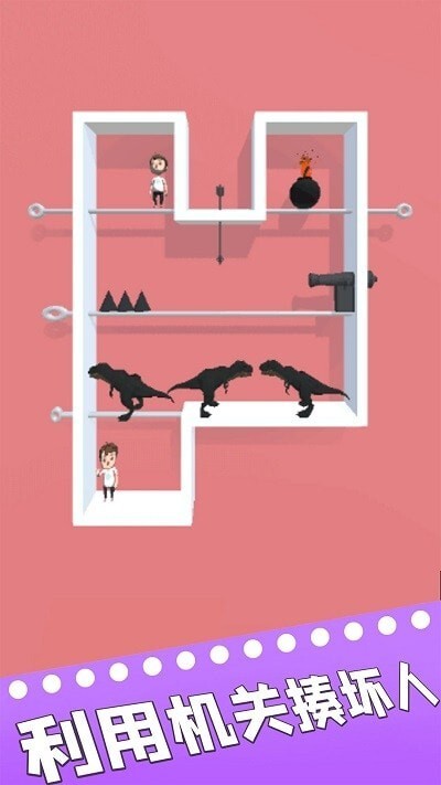 这是一款趣味十足的休闲闯关游戏,你的核心任务是解救被困的人员。你得运用各式各样的办法将他们从困境中救出,一旦疏忽大意,恐龙就会把他们吃掉。此外,游戏包含众多关卡,每个关卡都潜藏着不少危险。