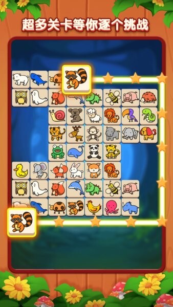 宠物消消派对安卓版里有超多可爱的小动物,模样十分萌趣,玩家得把两个相同的小动物卡片通过连线的方式消除,等所有元素都消除完才能解锁下一关。