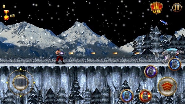 魂斗罗进化革命这一关卡的游戏场景设定在冰天雪地之中,本关新增了一个新兵种——机枪兵(其子弹发射速度极快),并且出现的普通小兵还会采取趴下射击的方式,这无疑提升了游戏的挑战难度。开局阶段若直接向前冲锋,雪地中会随即出现炸弹与机枪兵,此时需要在消灭机枪兵的同时,躲避其身后抛来的炸弹。行进至三个断崖附近时,需放慢脚步,等待后方飞来的三个道具,尽量将它们全部击中,这些道具都十分实用,分别是“S”“R”以及“神鹰”。需要特别注意的是,此时切勿向前跳跃,因为水中还潜伏着一个会向空中发射散弹的敌人。等该敌人冒出头后,使用“神鹰”即可将其消灭,若持有散弹武器则能更轻松地将其击败。跳过三个断崖后,会遇到两段平坦的道路,每段路上各有一辆大型坦克。应对方法较为简单:退至屏幕最左侧后转身,持续向坦克射击,当坦克被打至发红状态时,它会向玩家方向冲来,此时无需逃跑,保持射击即可在坦克冲过来之前将其摧毁。解决掉两辆大坦克后,再穿过一片布有炸弹的雪地,便能抵达关卡终点。